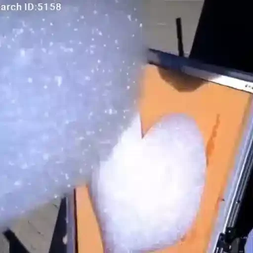 Una nube de nieve o humo blanco saliendo de una puerta naranja, con texto 'search ID 5158' en la esquina superior izquierda.