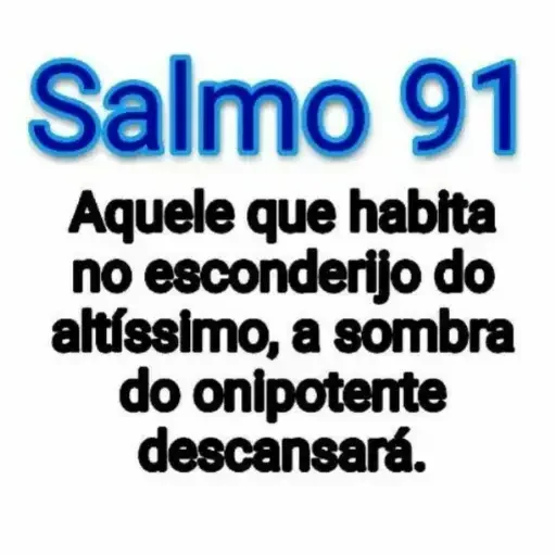 Un texto sobre fondo blanco, con 'Salmo 91' en azul y el versículo 'Aquele que habita no esconderijo do altíssimo, a sombra do onipotente descansará.' en negro.