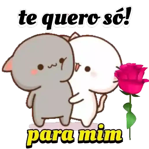Dos gatitos lindos, uno gris y uno blanco, con una rosa roja. El texto 'te quiero só! para mí' está escrito arriba y abajo de ellos.