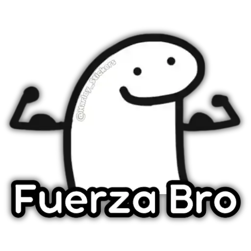Un dibujo simple de un personaje blanco con una sonrisa y dos puntos negros como ojos, con los brazos musculosos y la frase 'Fuerza Bro' debajo.