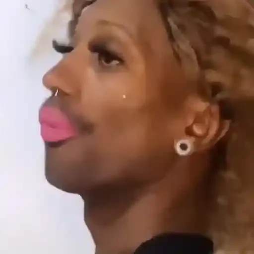 Rostro de una mujer negra con labios rosados y mirando hacia un lado, con pestañas postizas y aretes.