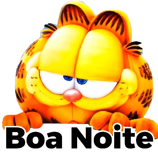 Garfield con expresión triste y ojos azules, mirando hacia abajo, con la frase 'Boa Noite' en letras negras.