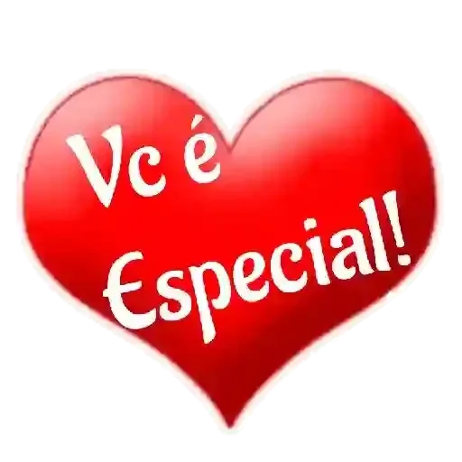 Un corazón rojo brillante con el texto 'Vc é Especial!' en letras blancas.