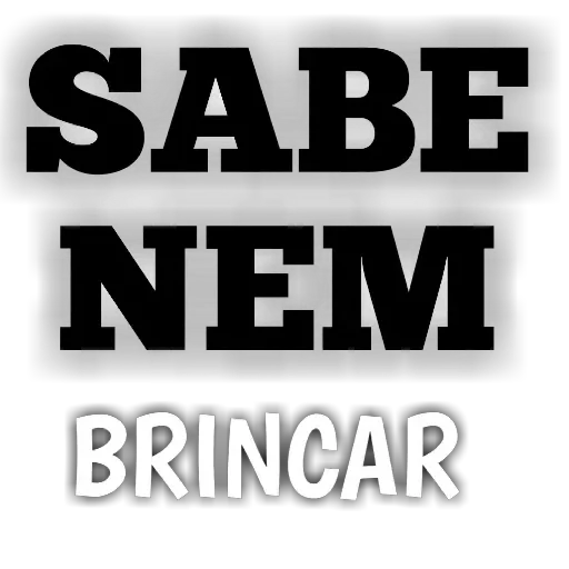 Una figurita con texto en negro y blanco. Las palabras 'SABE NEM BRINCAR' aparecen en letras mayúsculas con sombreado gris.