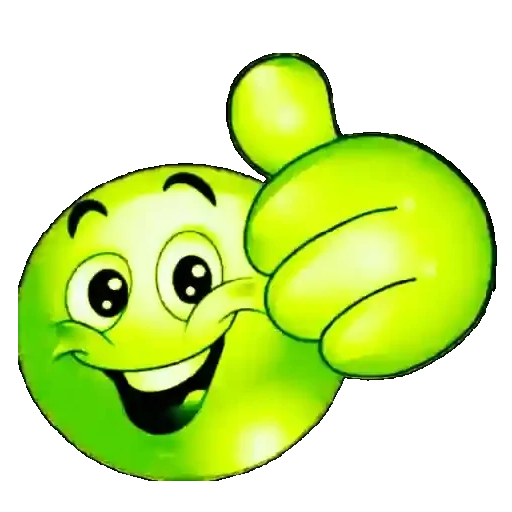 Um emoji verde sorridente com o polegar para cima, parecendo feliz e satisfeito.
