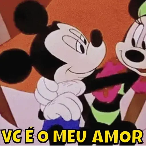 Mickey e Minnie Mouse se abraçando com o texto 'VC É O MEU AMOR' em amarelo na parte inferior.