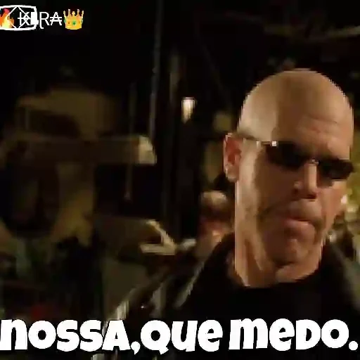 Imagem de um homem careca com óculos escuros e expressão séria, com a frase 'nossa, que medo.'