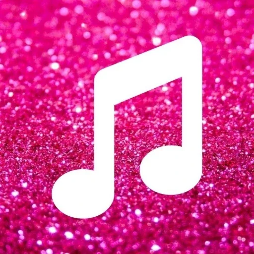 Um símbolo de música em branco sobre um fundo rosa brilhante com glitter.