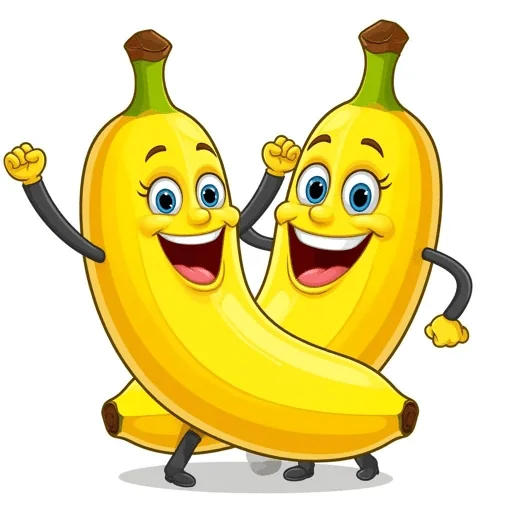 Dois bananas amarelos animados com expressões alegres e braços levantados.