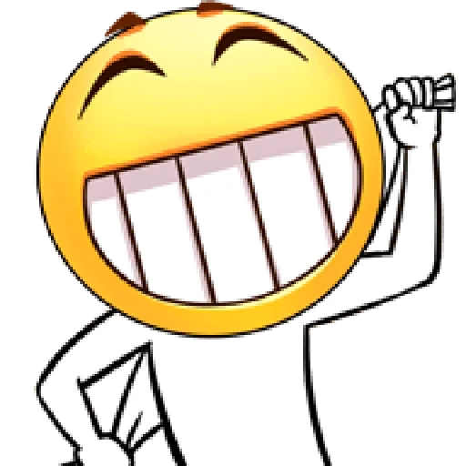 Um emoji amarelo com um sorriso largo e olhos fechados, com o punho levantado em celebração.