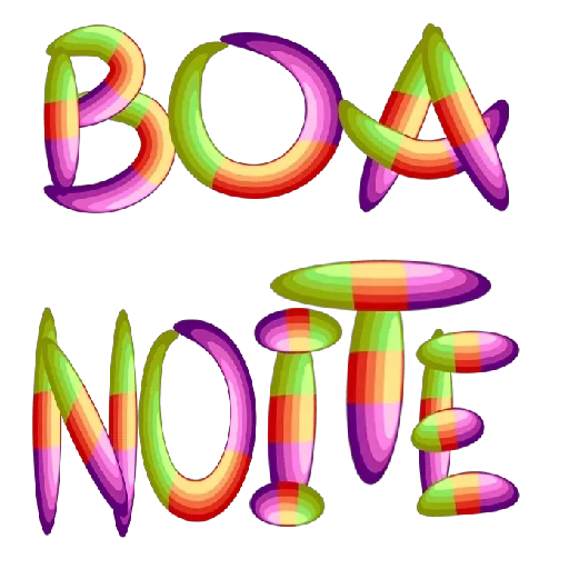 Um sticker colorido com a frase 'BOA NOITE' em letras grandes e decorativas, com tons de verde, rosa, laranja e roxo.
