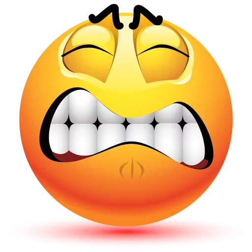 Emoji de rosto amarelo com olhos fechados e expressão de dor ou nojo, mostrando os dentes.