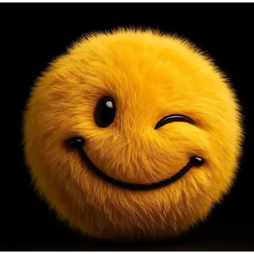 Um emoji de um rosto sorridente amarelo com pelos, fazendo careta de um olho fechado.