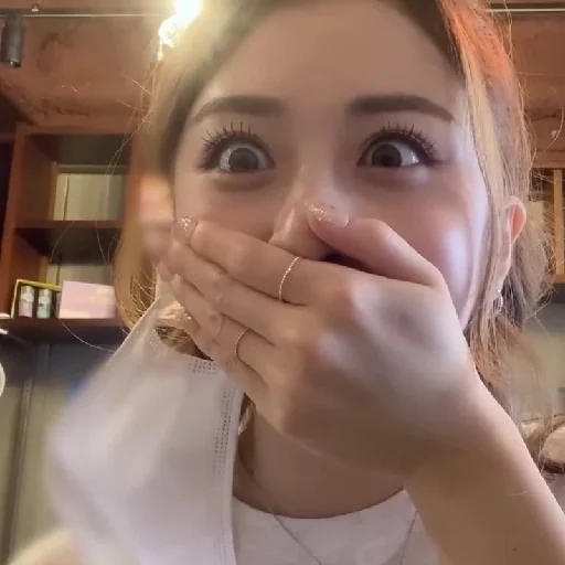 Uma mulher com a mão na boca e expressão surpresa, sentada no banco de um carro.