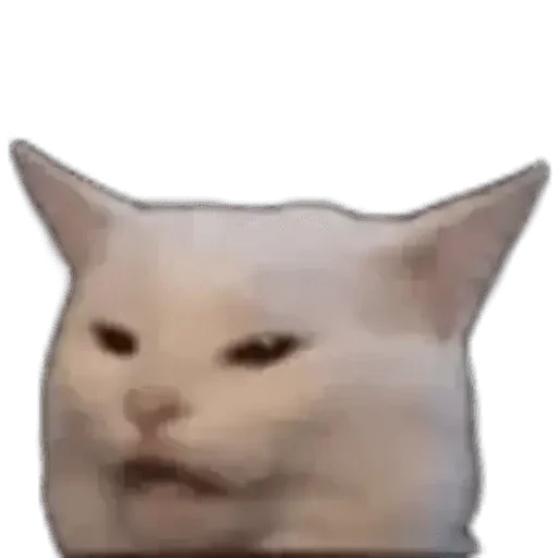 Rosto de um gato branco com expressão facial séria e olhos estreitos.