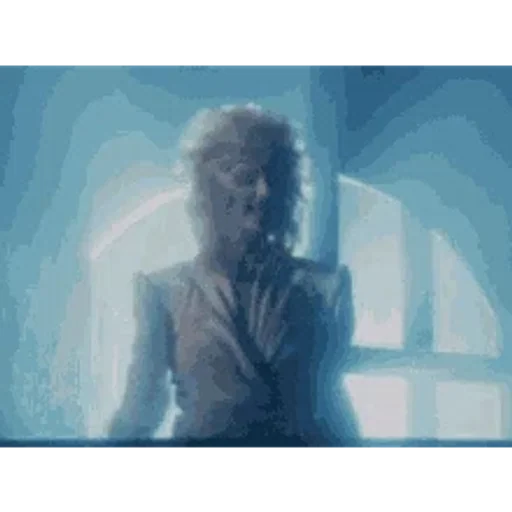 Um homem com cabelo desgrenhado e uma expressão assustadora aparece em frente a uma janela com luz azul.
