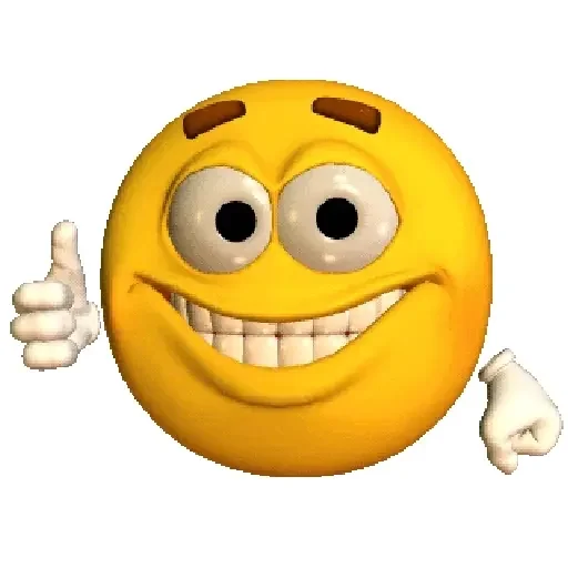 Um emoji amarelo com um grande sorriso e polegares para cima, parecendo feliz e satisfeito.