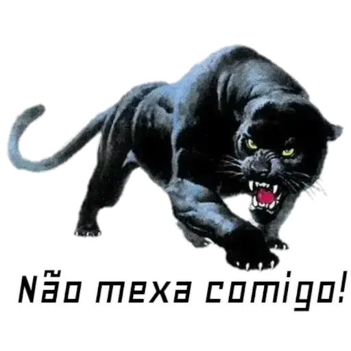 Um tigre preto agressivo com olhos amarelos e dentes arreganhados, com a frase 'Não mexa comigo!' embaixo.