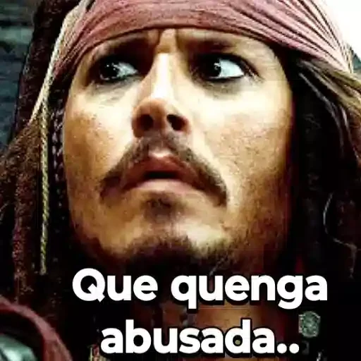 Imagem do personagem Capitão Jack Sparrow com expressão séria e o texto 'Que quenga abusada..' sobreposto.