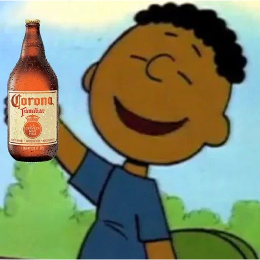 Menino de cabelo preto sorri e segura uma garrafa de cerveja Corona Extra.