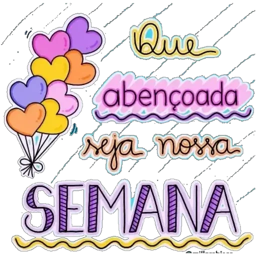 Um desenho colorido com balões de coração em várias cores e o texto 'Que abençoada seja nossa semana'.
