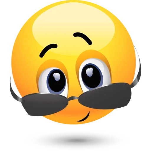 Um emoji amarelo com óculos de sol e uma expressão relaxada, com as sobrancelhas levantadas e um leve sorriso.