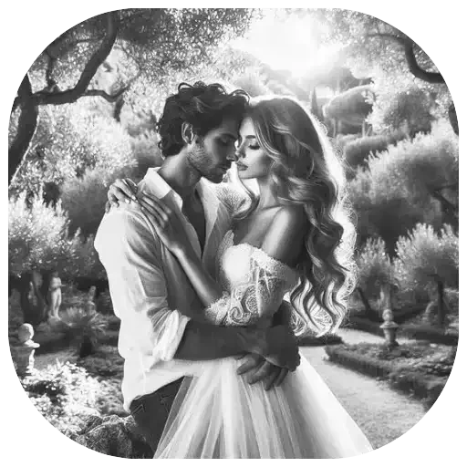Casal se beijando em um jardim romântico ao ar livre, com o homem de camisa branca e a mulher de vestido branco.