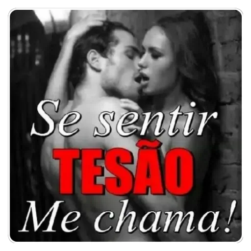Um casal de namorados se beijando, com o homem nu e a mulher de cabelos longos. A imagem é preto e branco com o texto 'Se sentir TESÃO Me chama!' sobreposto.