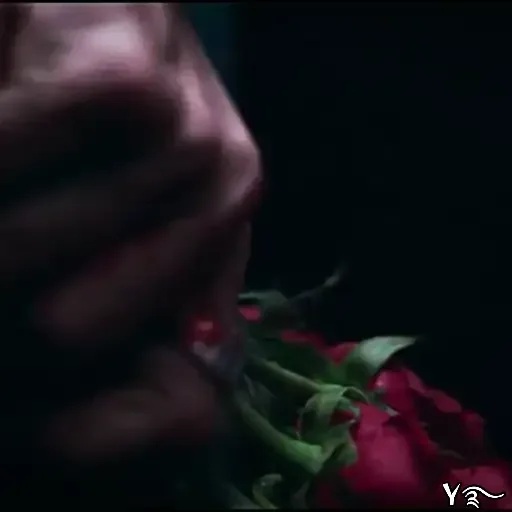 Rosto de uma pessoa com rosas vermelhas ao fundo, em um ambiente escuro.