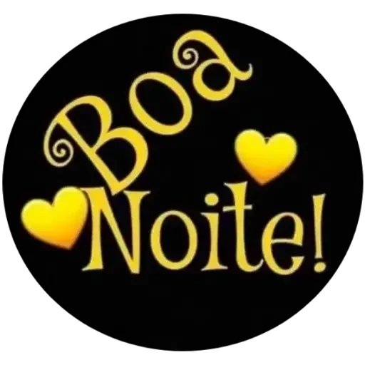 Um círculo preto com a frase 'Boa Noite!' em letras amarelas e três corações amarelos.