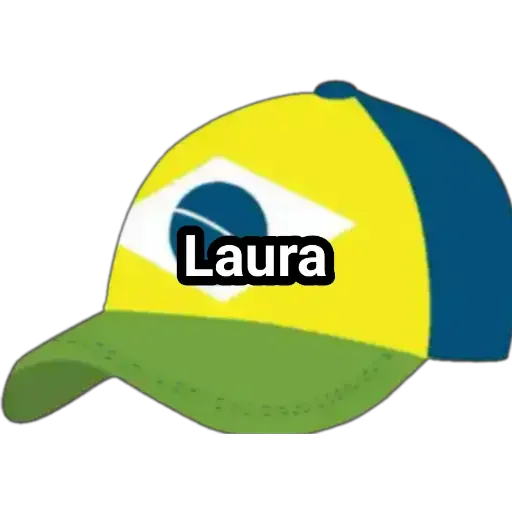 Boné com as cores da bandeira do Brasil e o nome Laura