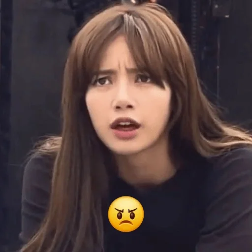 Uma jovem com cabelos castanhos e expressão de surpresa ou preocupação, com um emoji de rosto amarelo e sobrancelhas franzidas sobre o peito.