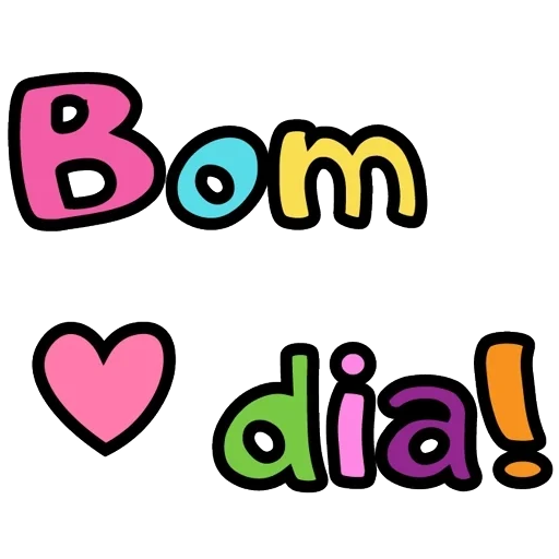 Um coração rosa e as palavras 'Bom dia!' em letras coloridas.