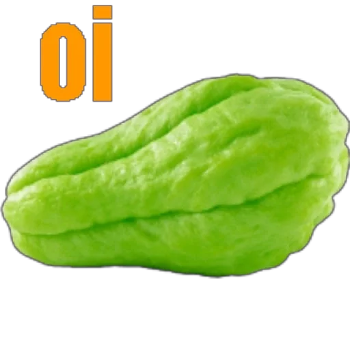 Um quiabo verde com a palavra 'oi' em laranja no canto superior esquerdo.