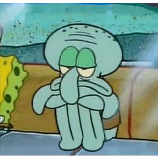 Um desenho do personagem Lula, de 'Bob Esponja', com expressão triste e mãos no rosto.
