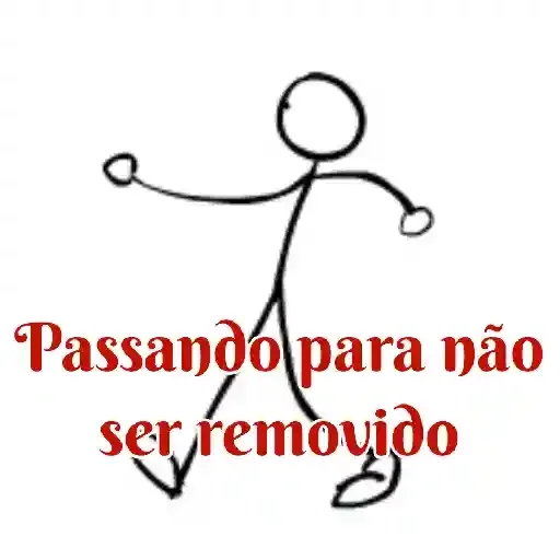 Um desenho simples de uma pessoa com os braços abertos e as pernas afastadas, com o texto 'Passando para não ser removido' em vermelho.