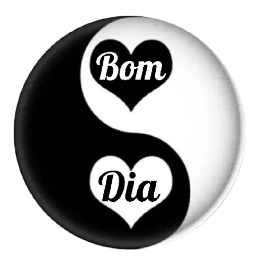 Um símbolo yin-yang com corações e as palavras 'Bom Dia' em estilo cursivo, metade preto e metade branco.
