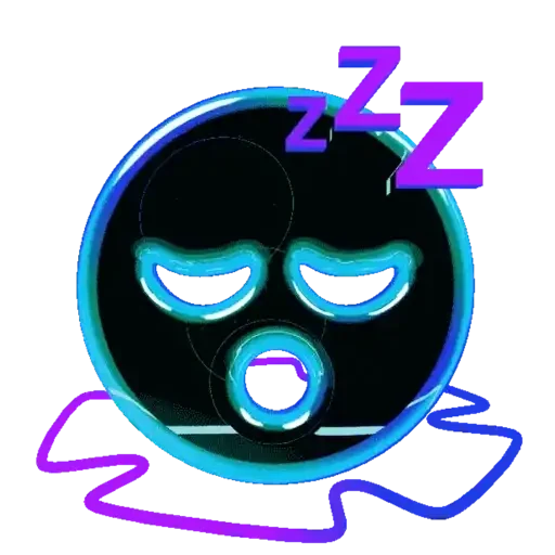 Rosto de uma careta com olhos semi-fechados e boca aberta, com um brilho azul e letras 'zZz' roxas indicando sono.