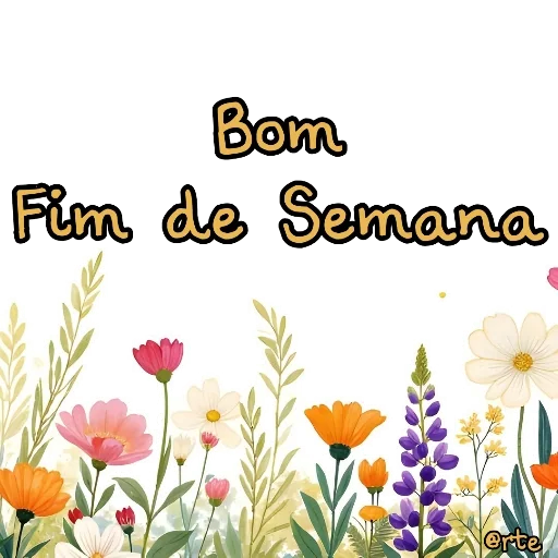 Um sticker com o texto 'Bom fim de semana' em letras grandes e pretas, com um desenho de um trombone amarelo e óculos…