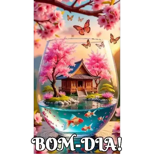 Uma ilustração de flores roxas, azuis e vermelhas com duas borboletas coloridas e o texto 'BOM DIA' em letras grandes.