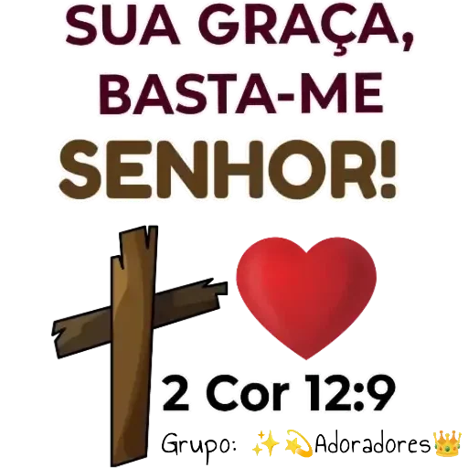 Uma cruz de madeira com um coração vermelho ao lado, com o texto 'SUA GRAÇA, BASTA-ME SENHOR!' em letras grandes coloridas e '2 Cor 12:9' embaixo.