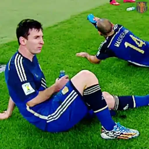 Jogador de futebol comemorando, vestindo camisa azul, com outros jogadores ao fundo, em um estádio.
