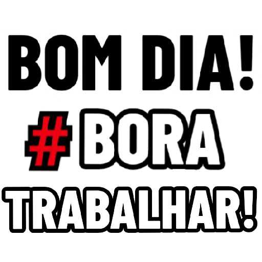Um sticker com o texto 'BOM DIA! # BORA TRABALHAR!' em letras grandes e coloridas.