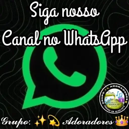 Um sticker com o logotipo verde do WhatsApp e o texto 'Siga nosso Canal no WhatsApp' em branco, em um fundo preto com um círculo dourado no canto inferior direito.