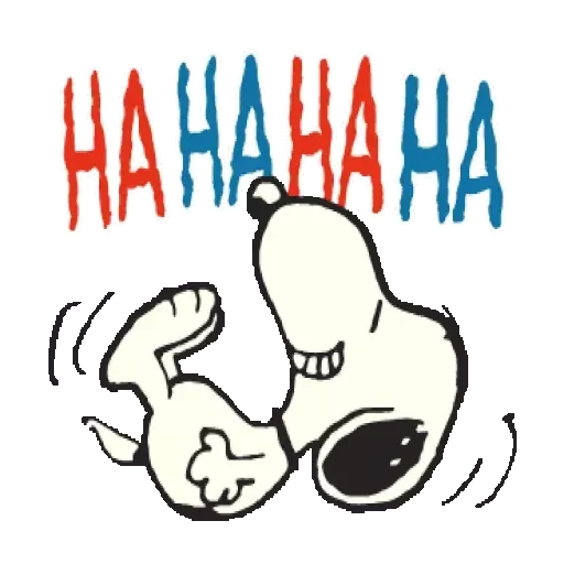 Snoopy deitado de costas rindo muito com a frase 'HA HA HA HA' em vermelho e azul.