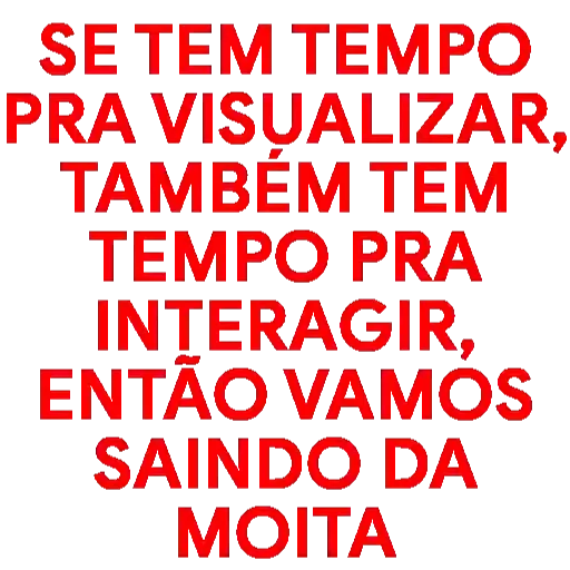 Um texto em vermelho sobre fundo branco que diz: 'SE TEM TEMPO PRA VISUALIZAR, TAMBÉM TEM TEMPO PRA INTERAGIR, ENTÃO VAMOS SAINDO DA MOITA'