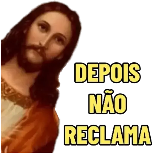 Imagem de Jesus Cristo com expressão séria e as palavras 'DEPOIS NÃO RECLAMA' em letras amarelas.