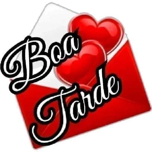 Um envelope vermelho com três corações vermelhos e a escrita 'Boa Tarde' em cursivo branco com contorno preto.