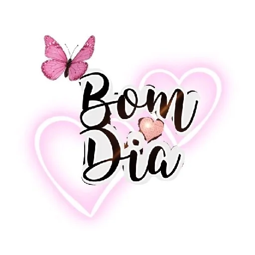 Um coração rosa com um texto 'Bom Dia' em letras cursivas pretas e uma borboleta rosa no canto superior esquerdo.