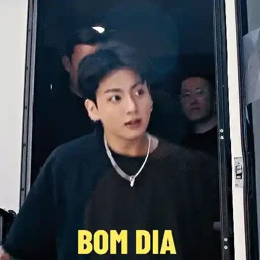 Um jovem com cabelo preto e um colar de prata olha para frente com uma expressão surpresa, usando uma camiseta preta. Ao fundo, duas pessoas. 'BOM DIA' está escrito em amarelo na parte inferior.